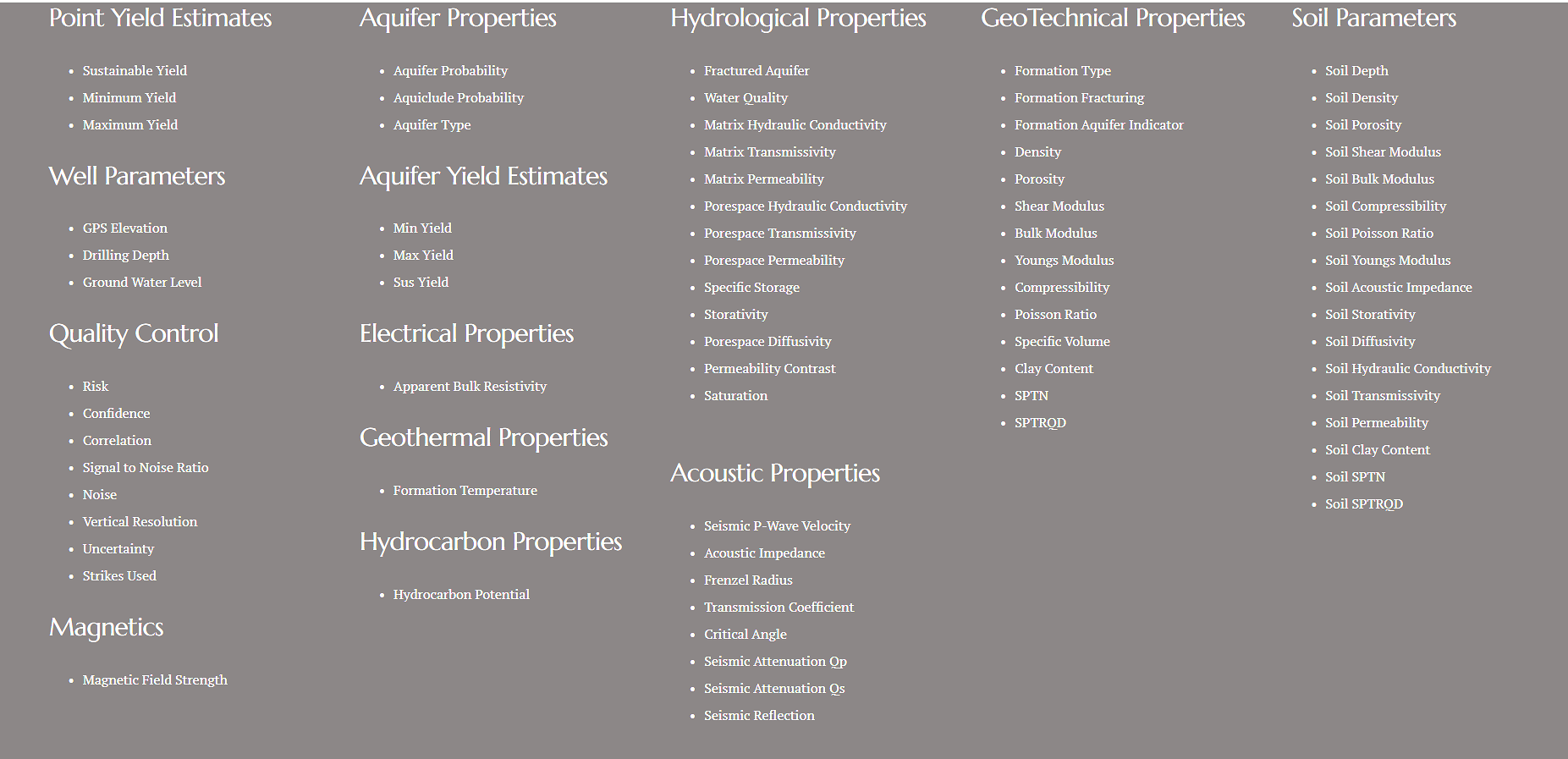 You will receive a virtual well log for each reccomended drilling location. These show the depths to, and thickness of, the aquifer targets.